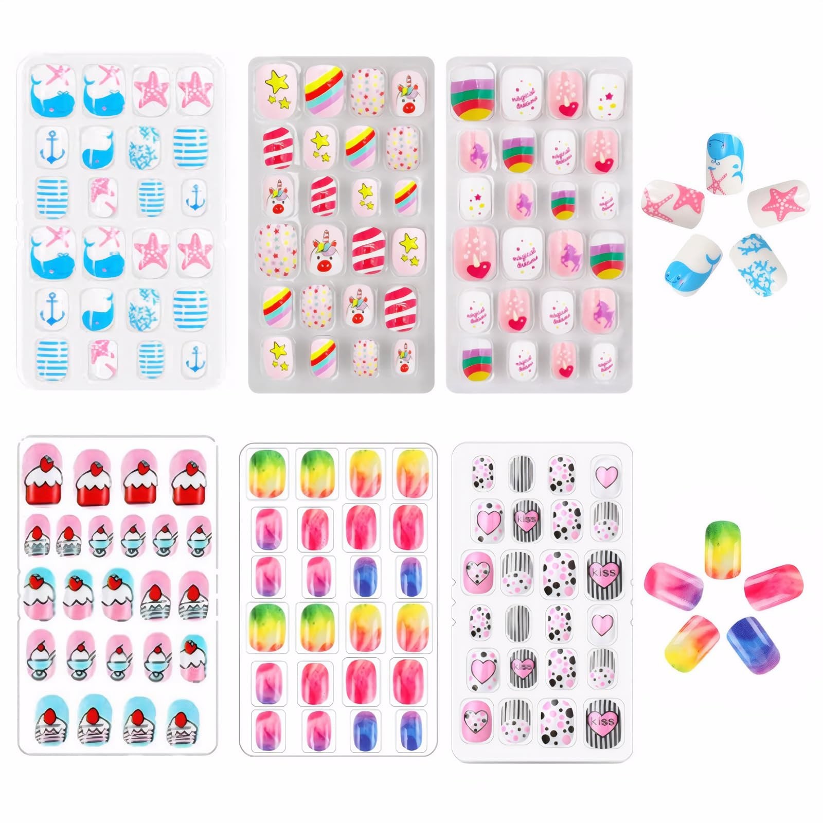 144 Pieces Kids Stick on Nails, Full Cover Children False Nails (Multicolor)