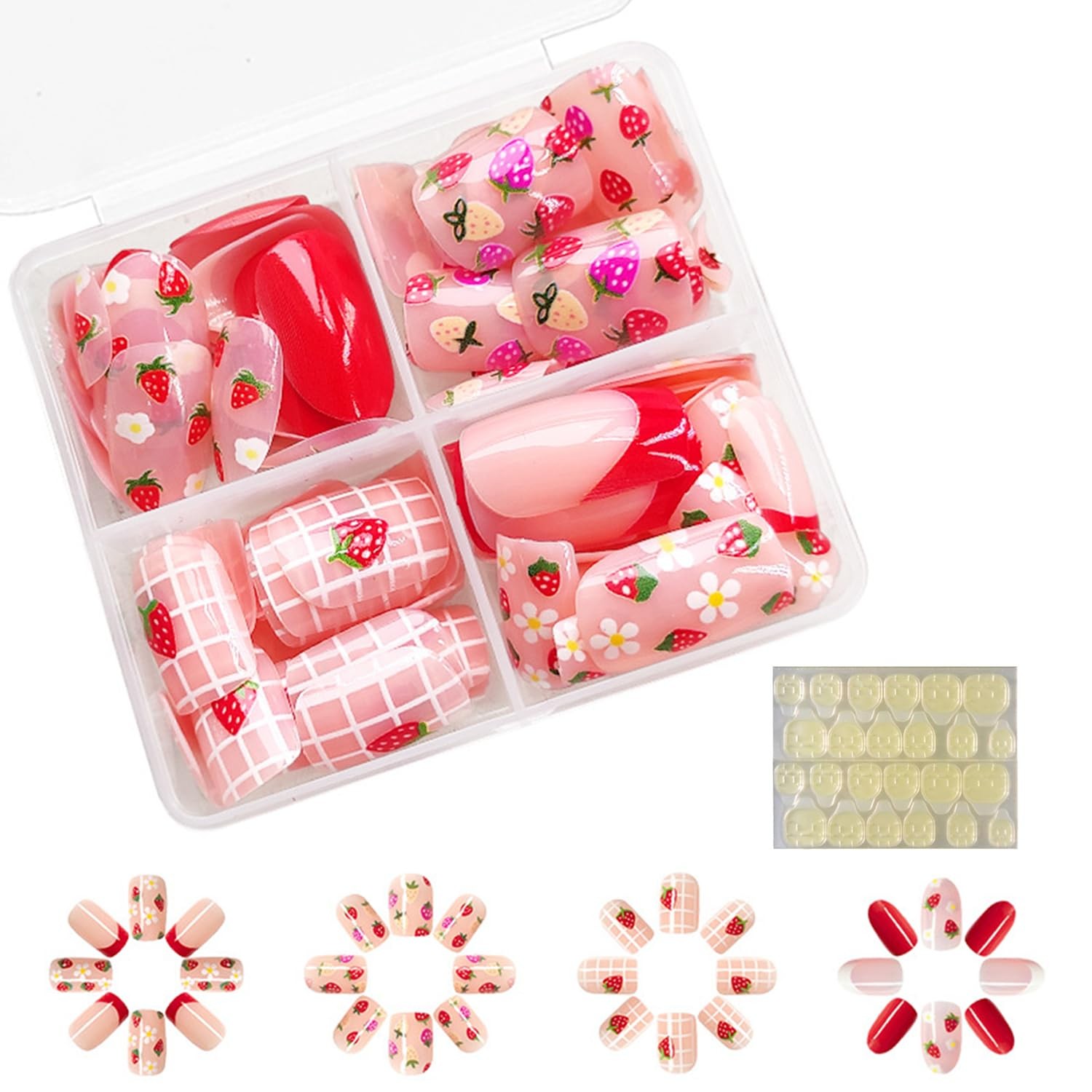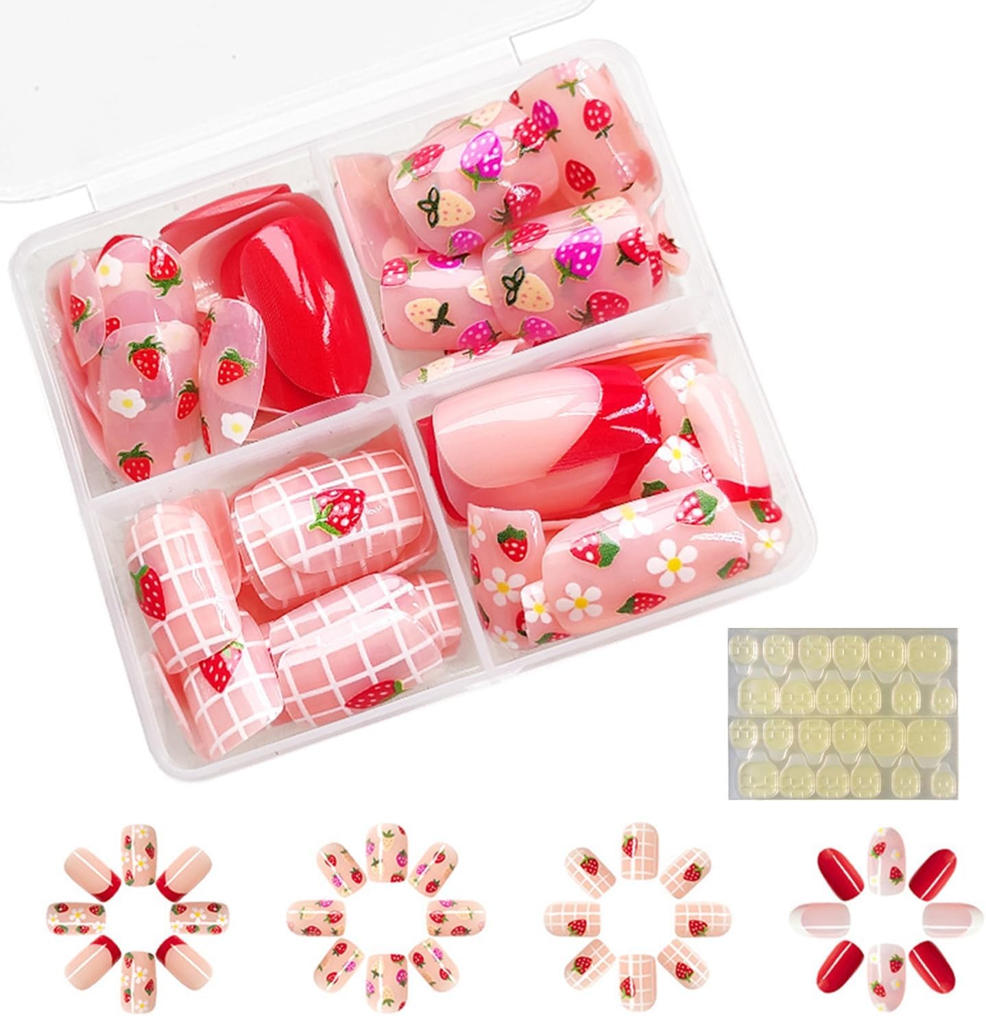 96 Pieces Kids False Nails, Children Press on 0.38 g (Pack of 96), Strawberry