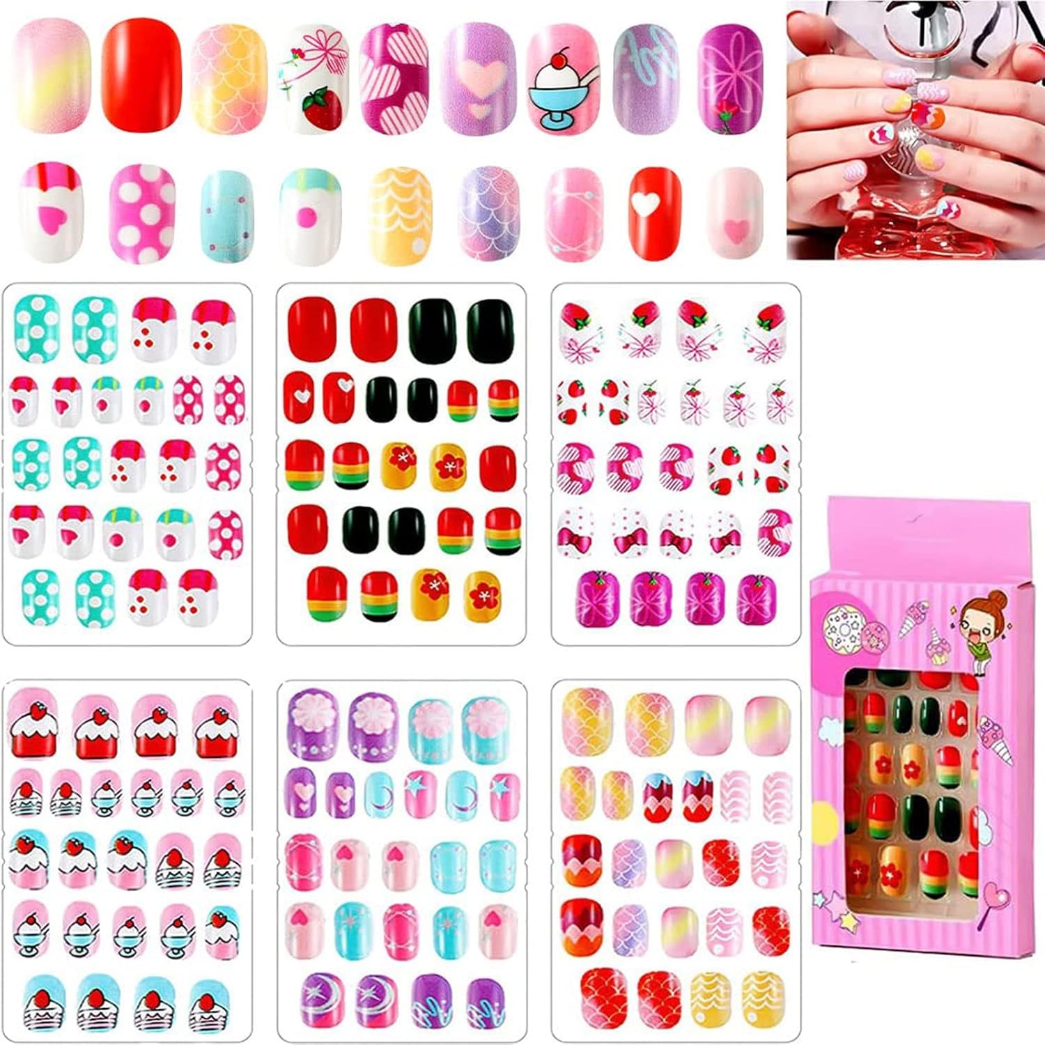 144Pcs Kids Stick on Nails - Pre-Glue Full Cover Short Fake Nails for Kid - Kids