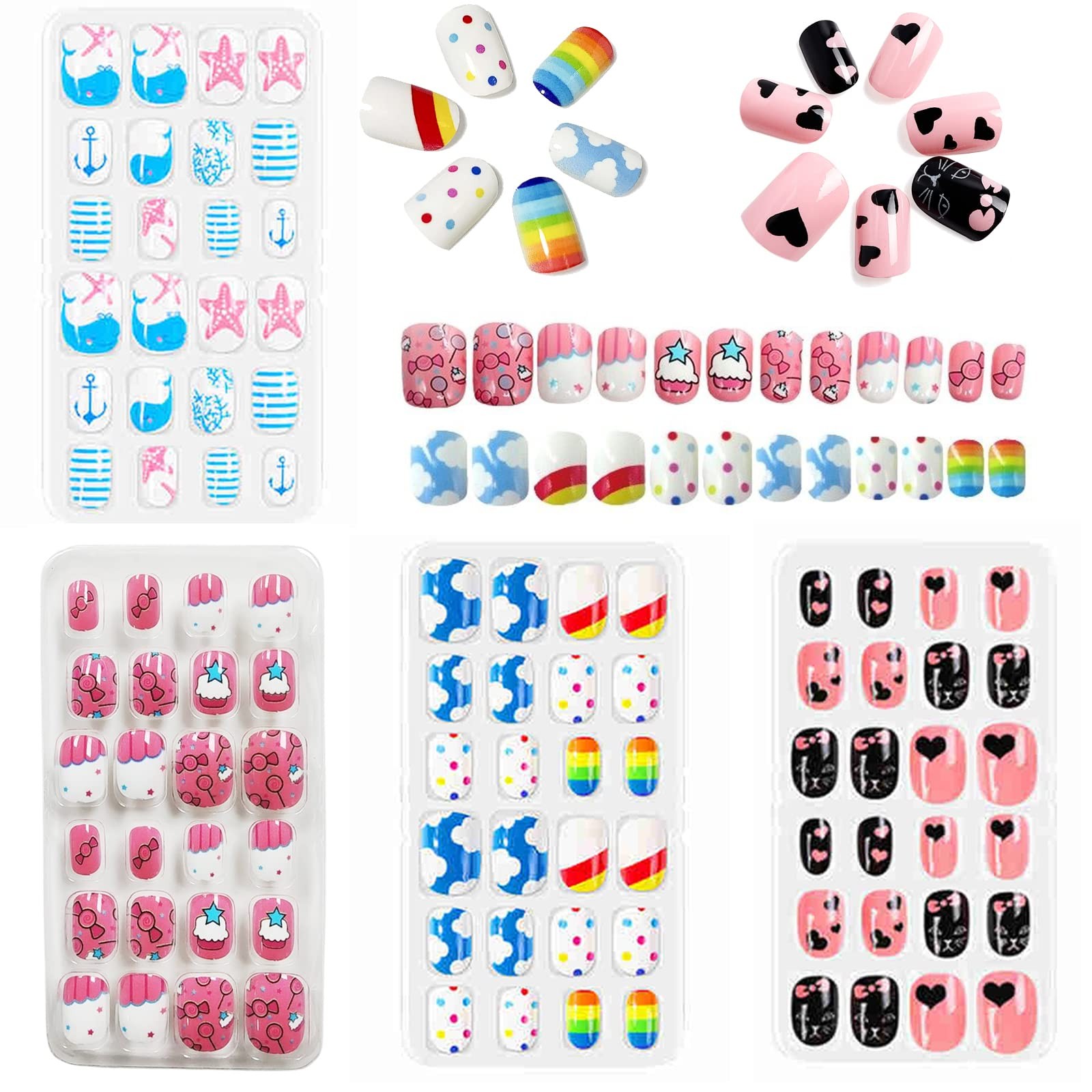 120PCS Kids False Nails, Kids Press on Nails Kids Stick on Nails Full Cover Kids