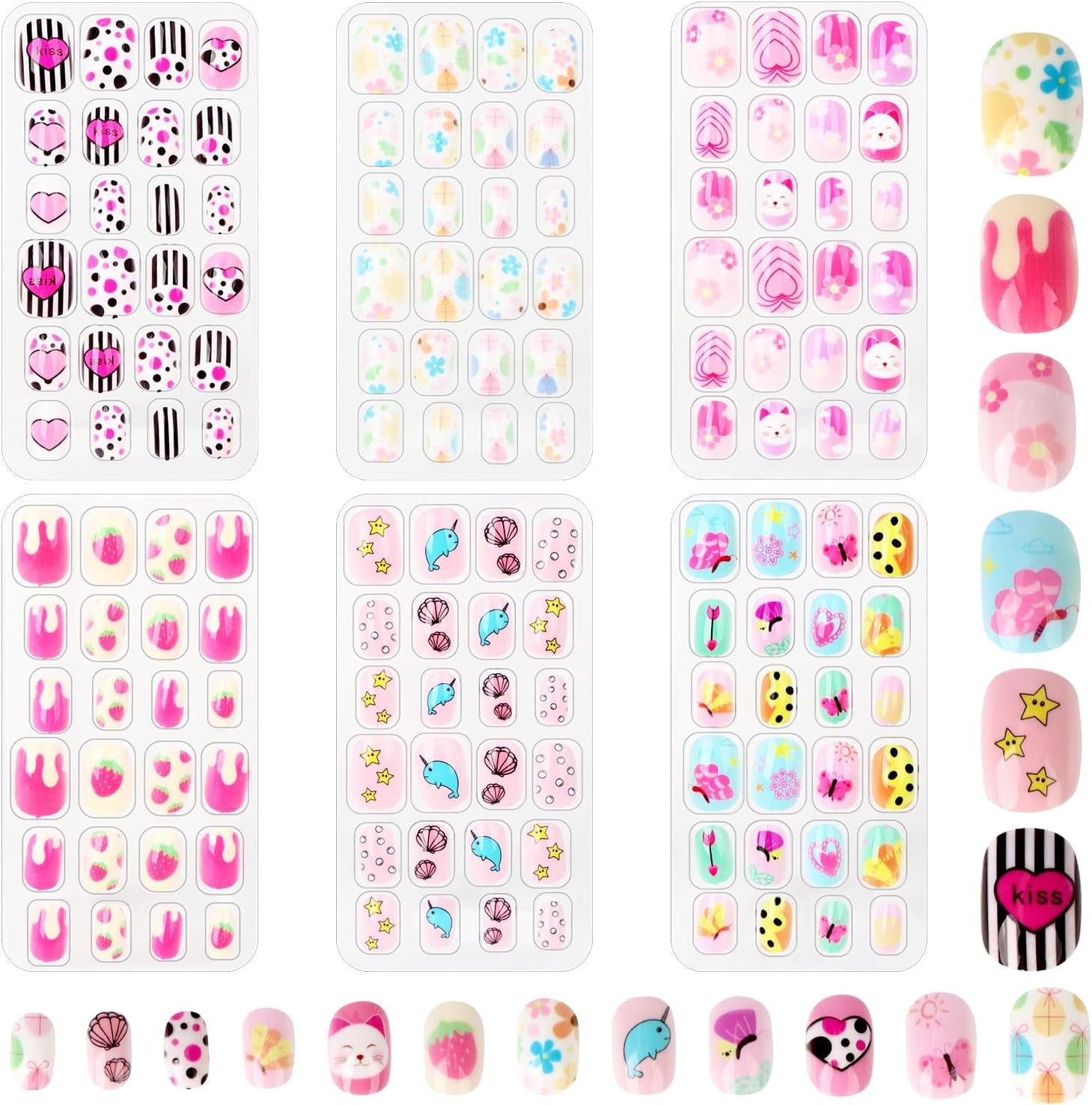 144 Pieces Kids Stick On Nails, Full Cover Children False 16.33 g (Pack of 6)