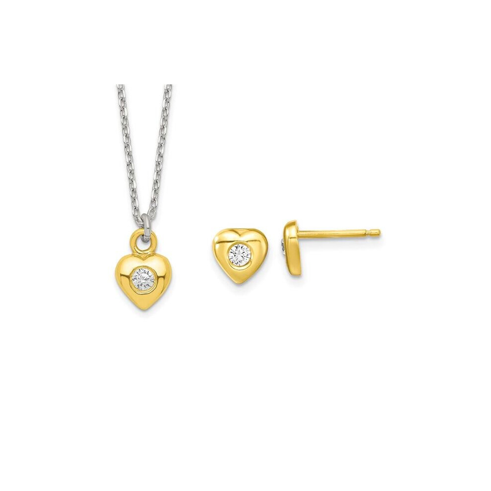 Sterling Silver Gold-Tone Kids CZ Heart Necklace & Post Earrings Set