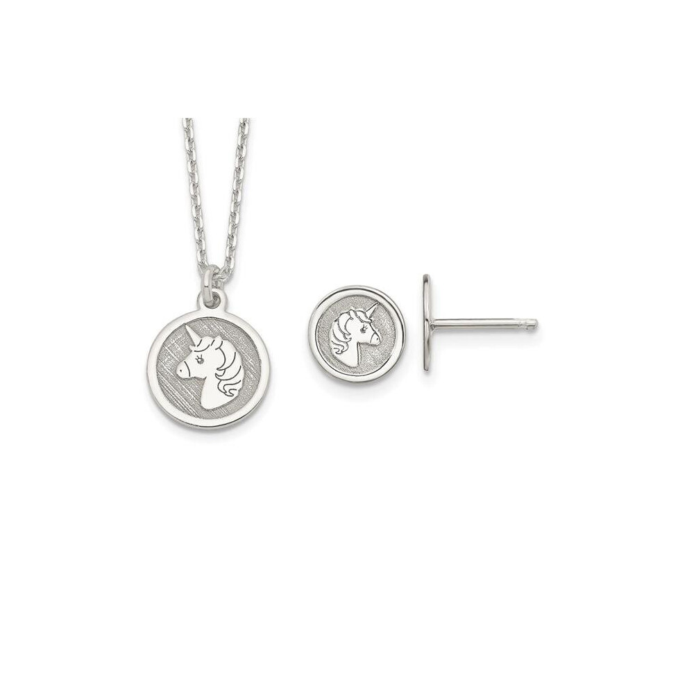 Sterling Silver Kids Unicorn Necklace & Post Earrings Set
