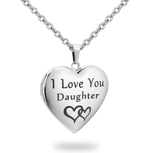 PHOCKSIN I Love You Daughter Silver Heart Locket Necklace Best Birthday Gifts From Dad Mum Kids Locket Necklace For Girls