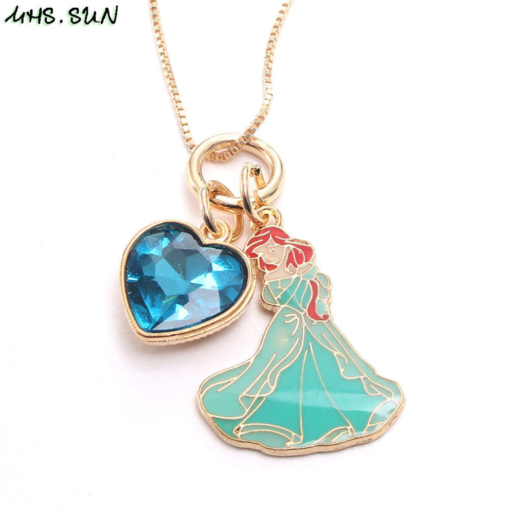Girls Heart Charms Jewelry Mermaid Princess Pendant Necklace Kids Girls Chain Necklace Party Gift 1PC For Party