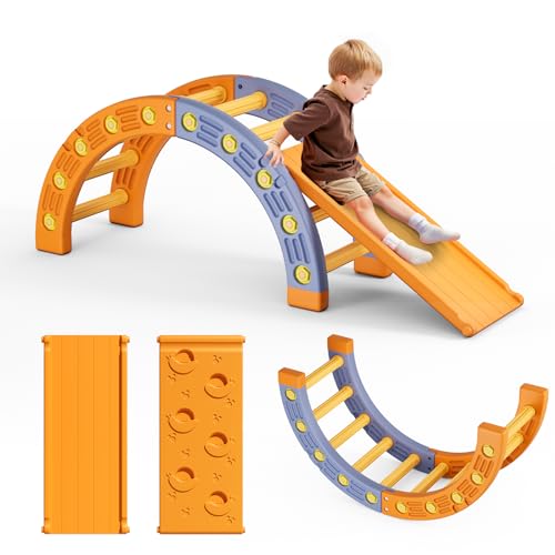 Krovtoy Toddler Climbing Toys Indoor, Plastic Montessori Climbing Set, Kids Climbing Toys with Ramp, Arch &2 Ladders, Baby Climbing Gym (Tripod + half circle + ladder + slide)