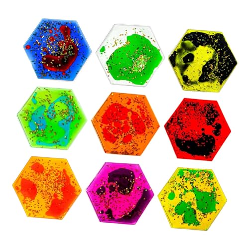 Yunhgft 9-Piece Liquid Sensory Toy for Kids, Fidget Movement Play Mat, Learning Toy with Versatile Use, Made of Flexible TPU for Rewarding, 15x15cm