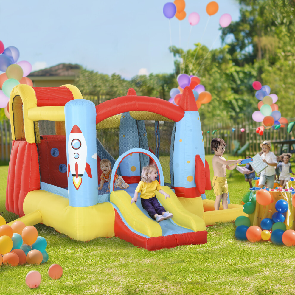 Outsunny Rocket Bouncy Castle with Slide, Pool & Trampoline - Holds 4 Kids, Includes Carry Bag & Blower
