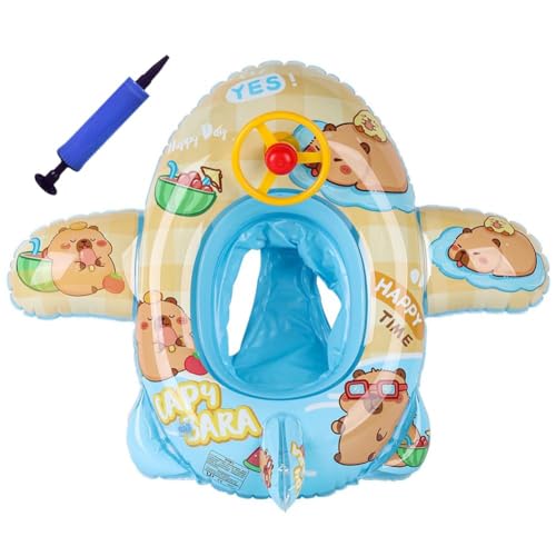 Capybara Pool Floats Set for Kids,Inflatable Swimming Rings,Air Pump,Water Safety Aid for Toddlers & Children,Cute Brown Animal Float for Beach & Bath (A)
