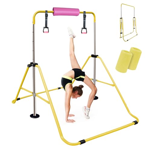 Triclicks Gymnastics Bar, Folding Horizontal Bar with Gymnastic Rings Kids Boys Girl Gymnastics Training Equipment, Adjustable Height Junior Training Bar Kip Bar for Home Gym Indoor Garden Outdoor