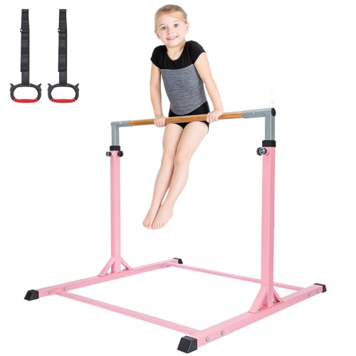 M.J COMFY-LIFE Gymnastics Bar for Kids with Rings – Height Adjustable (13 Levels) – Safe & Stable Gym Bar for Home, Outdoor & Indoor Training – Ideal for Kids
