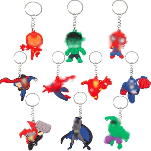 yumcute Super Hero Keyring Cute Anime Keychain Pendant 3D Silicone Key Chain Cartoon Keyrings Rings Kids Party Supplies Party Favors Bags fillers Novelty Toy Birthday Gift for Boys Girls Keychains