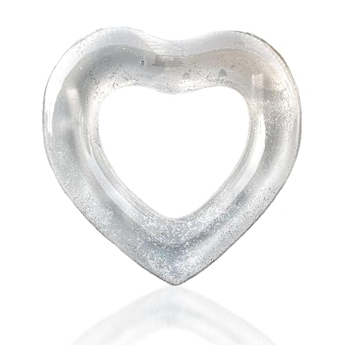 Pool Inflatables Swimming Ring for Kids Adult Rubber Rings,90cm Transparent Heart Inflatable Swim Rings Pool Float Tube,Inflatable Pool Ring Toy Floaties for Girls Women Beach Summer Party Water Sport