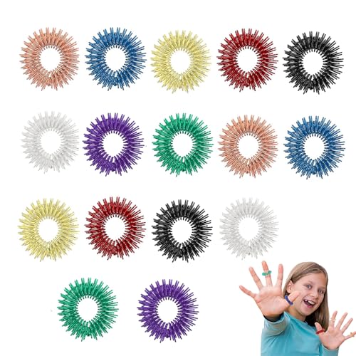 16 PCS Fidget Ring Kids, Sensory Rings, Stress Ring, Acupuncture Ring, Acupressure Rings, Spiky Sensory Finger Rings, Silent Anxiety and Stress Relief Fidget Ring Set for Teens, Adults(8 Colours)