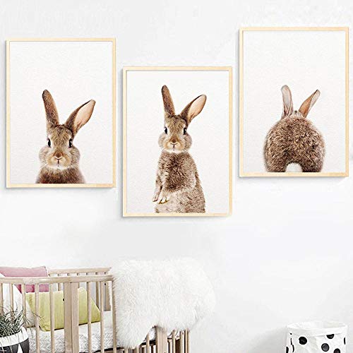 TANYANG Nordic Rabbit Animal Wall Art Canvas Painting 3 Pieces Posters And Prints Bunny Nursery Wall Pictures For Living Room Kids Room Decor 12"X16"X3Pcs Unframed