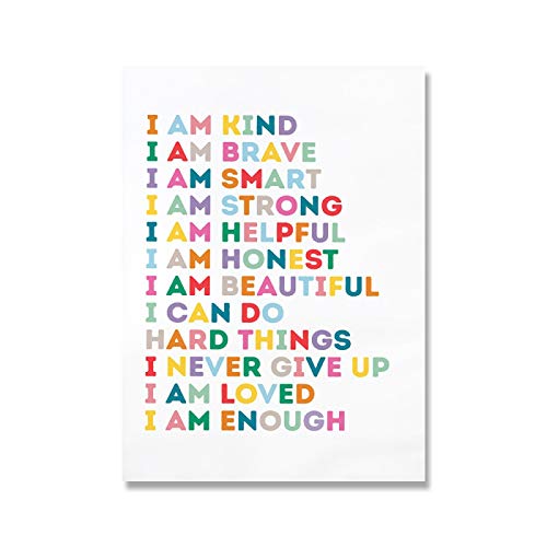 HYFBH Kid Affirmations Wall Art Canvas Painting I Am Kind I Am Enough Colorful Poster Prints Nursery Kids Room Wall Art Decor 50x70cm(20x28in) Unframed