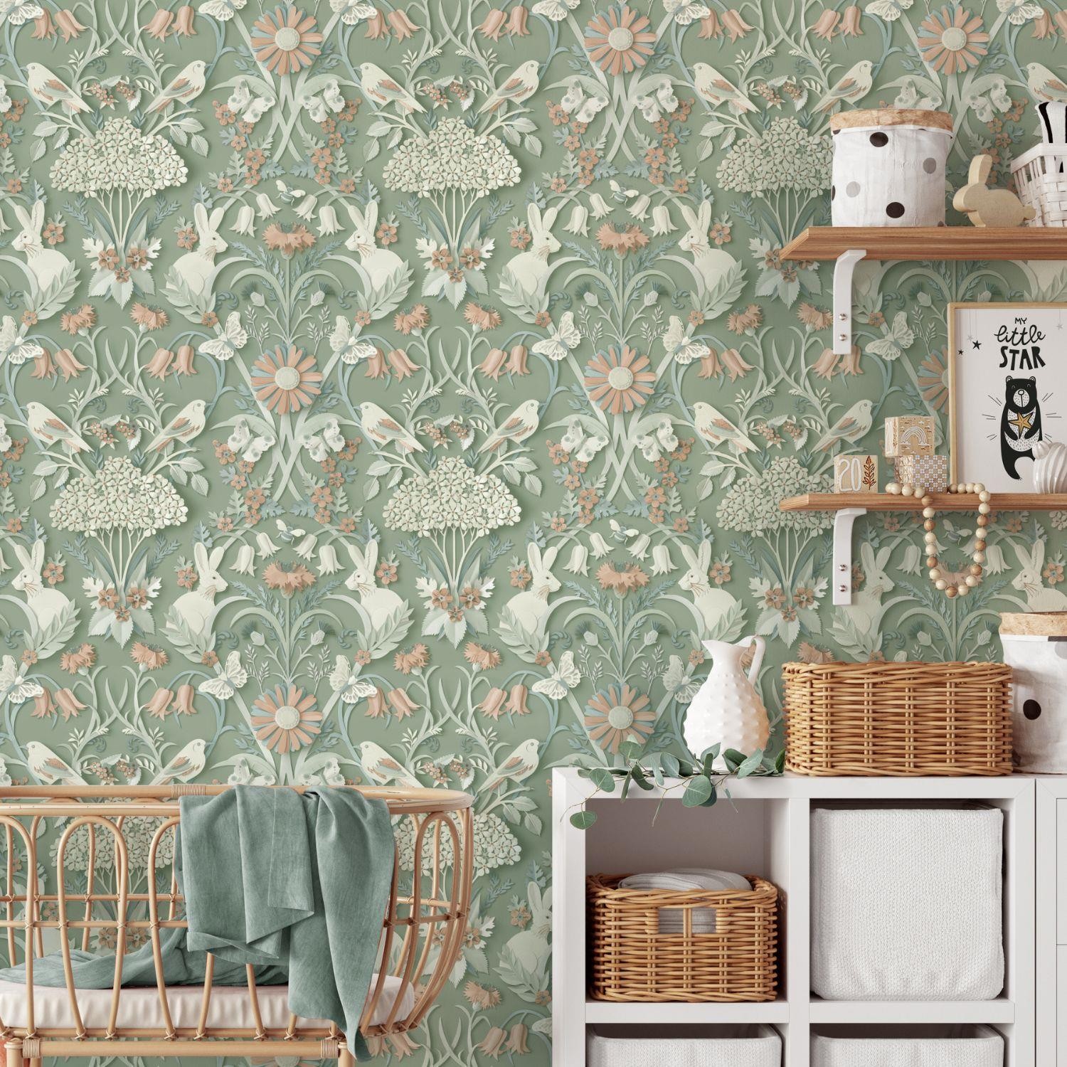 Mint Green Washable Wallpaper Woodland Kids Room Fine Decor Paste The Paper