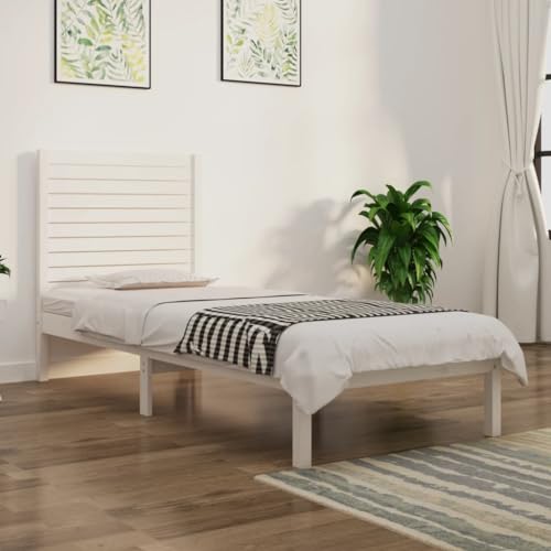 QJBSAVVA White Single Bed Frame 90x190 cm Solid Pine Wood Compact Kids Guest Room Furniture with Headboard Easy Assembly Bedroom, Hallway, Dorm