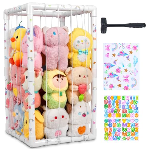 MHJY Stuffed Animals Zoo Storage Soft Toy Holder Organiser Large Cuddly Toys Storage Shelf with Elastic Band Stuffed Animals Cage for Nursery Playroom Bedroom Kids Room Furniture