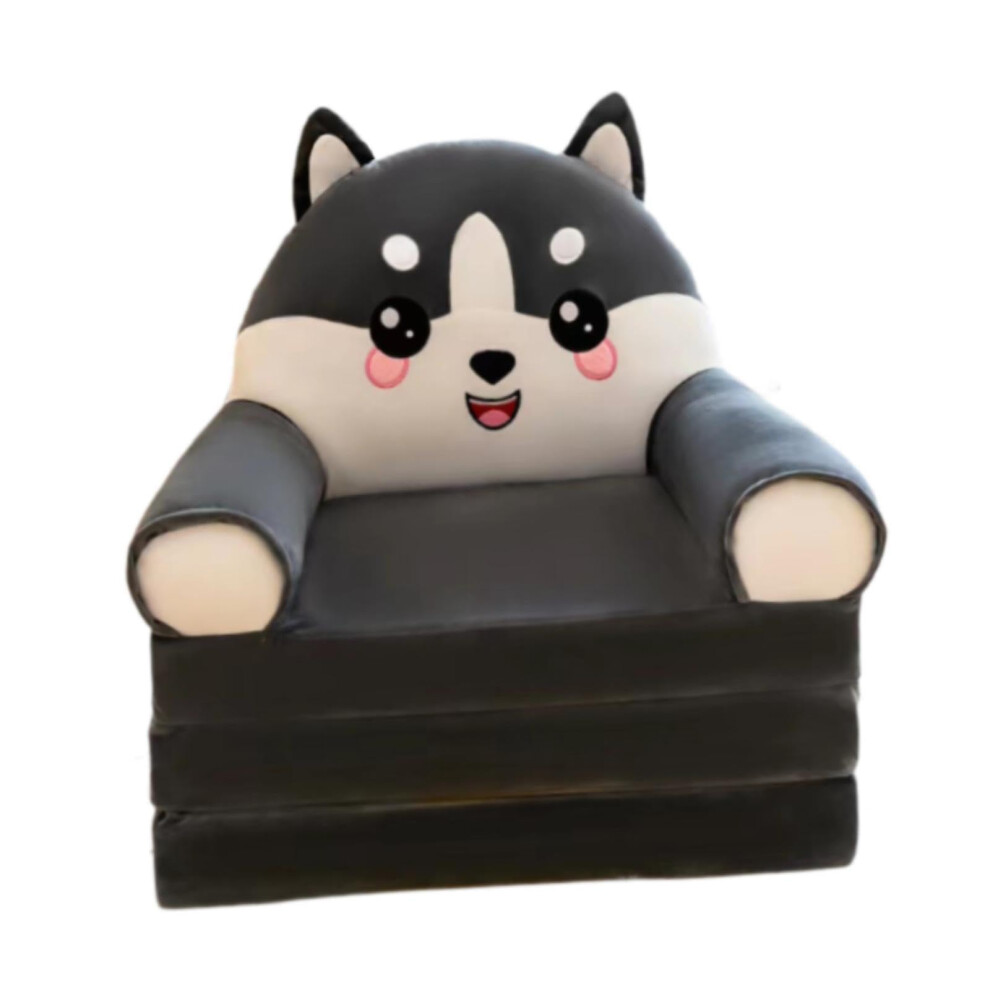 Animal Shaped Stuffed Folding Sofa Bed Sleeper Chair For Children, Convertible Chair, Black Dog, Nursery Room And Kids Room Furniture