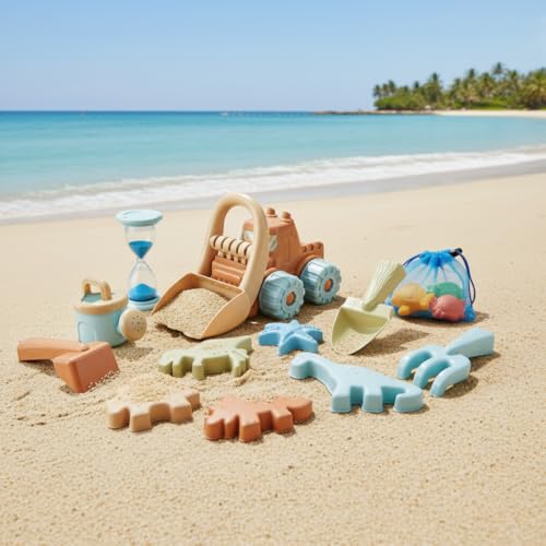 Sanlebi Sand Beach Toys for Kids, Soft Material Sandpit Toys with Bucket and Spade, Reusable Mesh Bag, Summer Beach Games for Toddlers Children