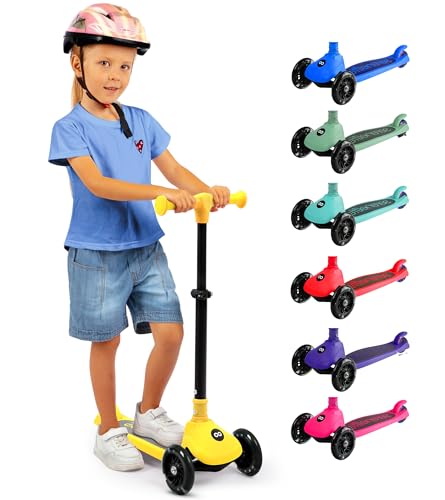 3 Wheel Kids Scooter for Age 3-6, Kick Scooter with LED Flashing Light Up Wheels, Removable Seat & Adjustable Handlebar, Lightweight Scooters Toddlers Children Boys and Girls