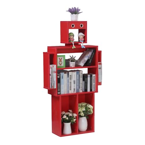 BZJPRFC Creative Bookshelf,Kids Floor Standing Shelves,Wooden Toy Organizer,for Living Room Bedroom Office,Bearing Weight 150KG(Red)