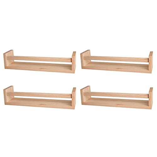 Giwnhvx 4Pcs Bookshelf,Natural Wood Floating Wall Bookshelf for Kids,Nursery Shelves for Wall,Bathroom Decor, Kitchen Spice Rack