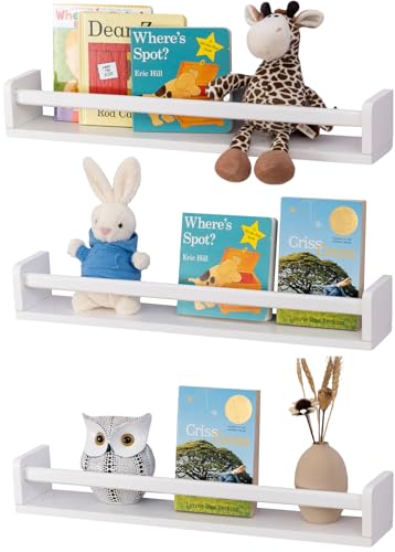 Gieanoo White Book Shelves Kids Room, Set of 3 Nursery Book Shelves Wall Mounted Book Storage Unit, 40cm Floating Book Shelves for Wall Organizer for Nursery