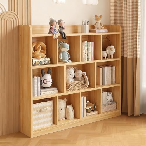Huhote Kids Bookshelf Wooden Childrens Bookcase, Kids Storage Book Rack, Toddler Book and Toy Organizer Cabinet Book Display, Kids Shelves for Bedroom, Playroom, Nursery, Kindergarten (Oak)