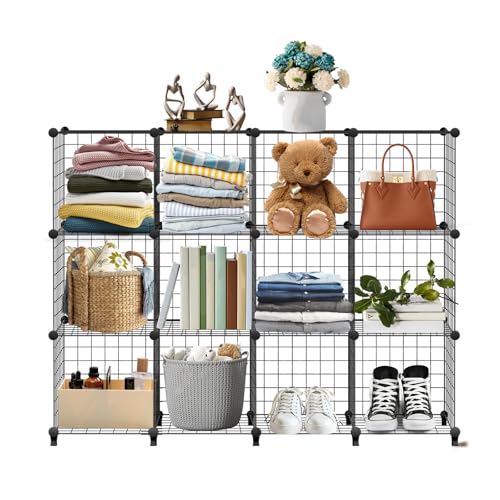 Cube Storage, Living Room Bookcases and Shelving Unit, Storage Shelves, Kids Bookcases, Multifunctional DIY Wire Fence Wardrobe Closet Cabinet, Storage Organiser, BookShelf