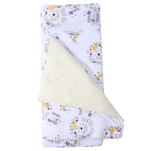 Toddler Sleeping Mat with Pillow and Blanket Thermal Sleeping Mat with Handle Portable Roll Up Kids Sleep Bag Nap Mats for Daycare Preschool Travel and Camping Lions