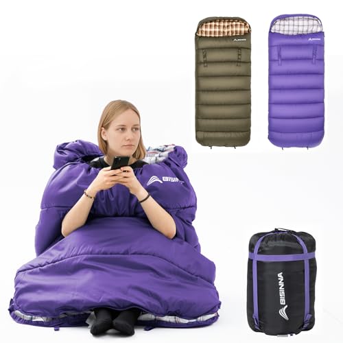 BISINNA XXL Flannel Wearable Sleeping bag with Pillow 3 Season for Adults & Kids Warm Lightweight Sleeping bag Waterproof for Hiking Backpacking Camping Indoor Outdoor with Compression Sack