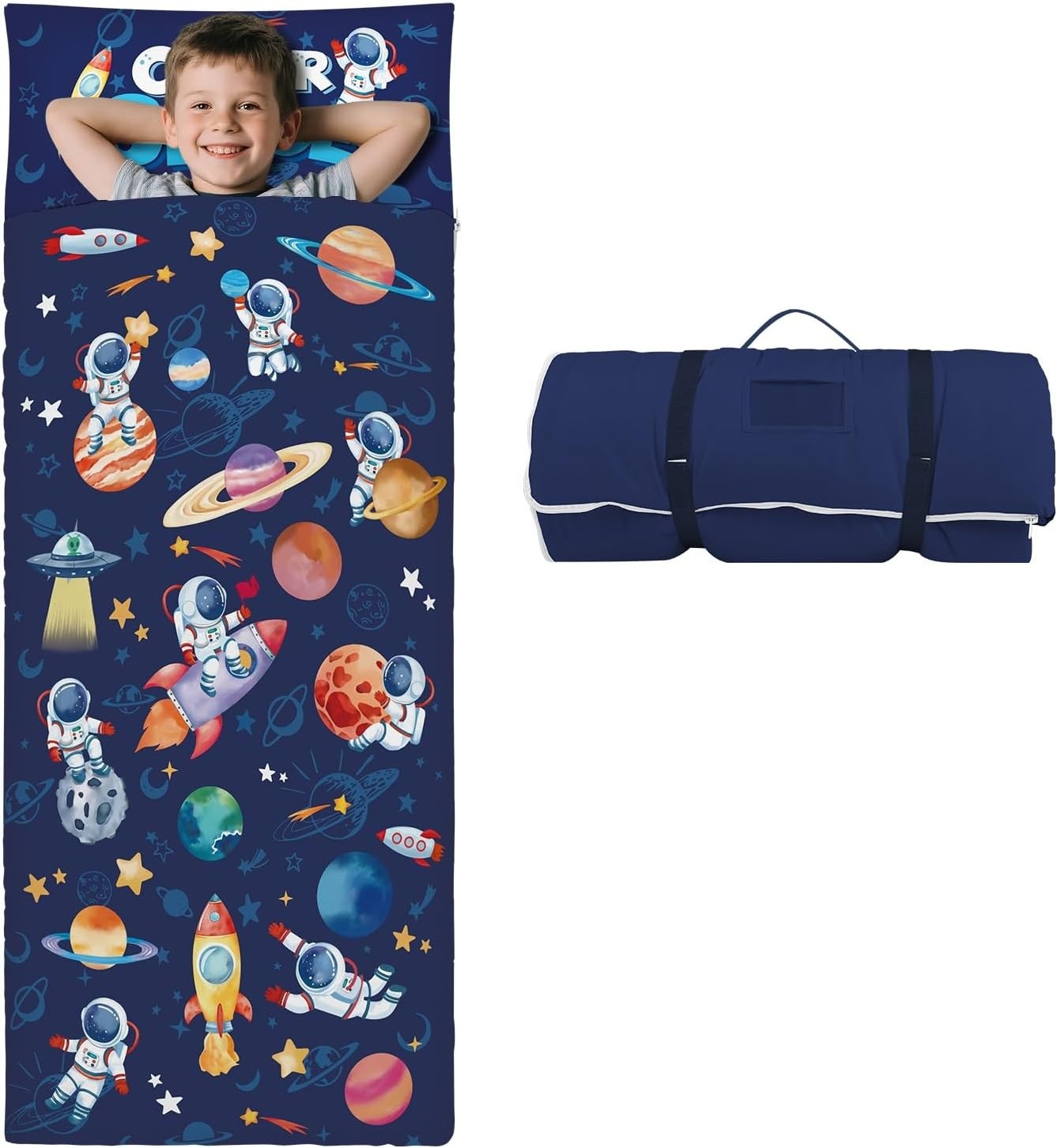 Kids Sleeping Bag-Pillow,Mat and Blanket Included-Comfy Nap Mat for Toddlers Boys,All-In-One Sleepover Bag for Travel Nursery,Gift for Birthday Christmas,Astronaut