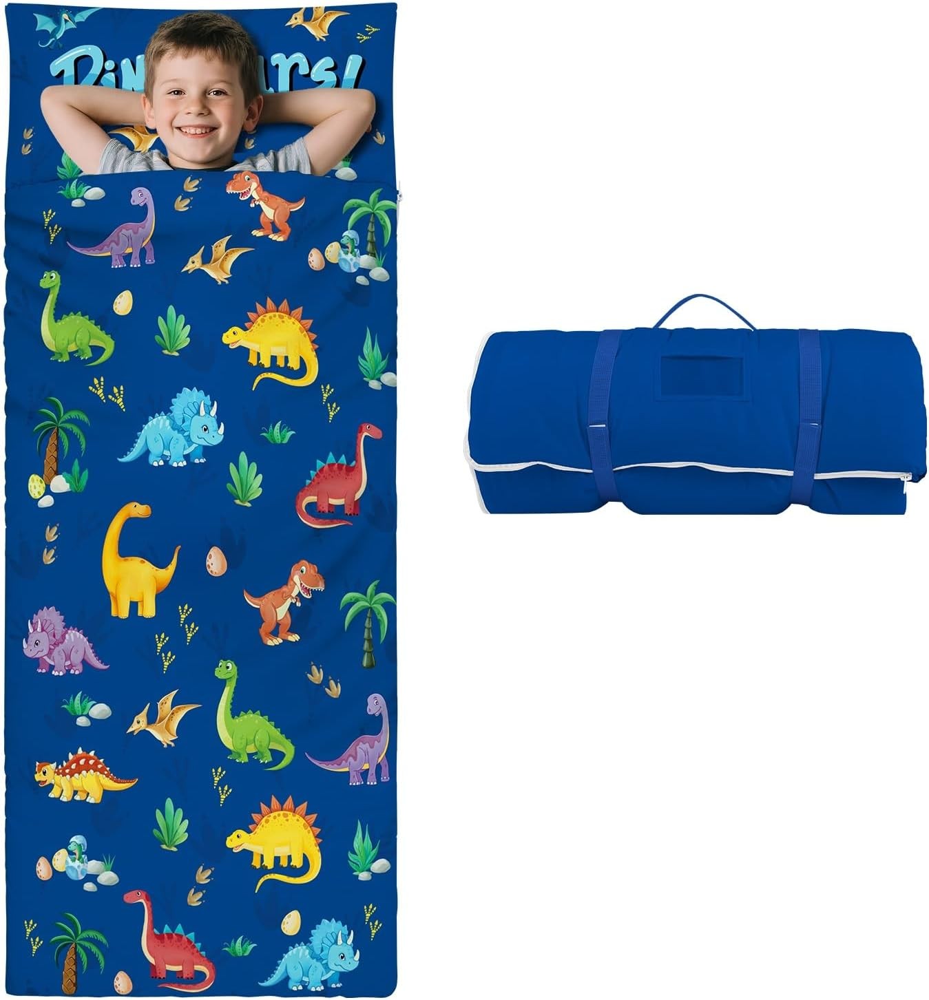 Kids Sleeping Bag-Pillow,Mat and Blanket Included-Comfy Nap Mat for Toddlers Boys,All-In-One Sleepover Bag for Travel Nursery,Gift for Birthday Christmas,Dinosaur