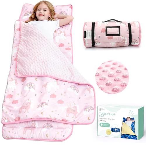Pink Unicorn Nap Mat for Kids Girls-Pillow,Mat,Blanket All in One-Children Sleeping Bag for Nursery Daycare Travel,Gift for Christmas Birthday