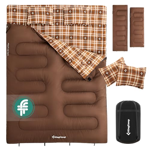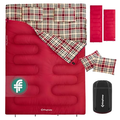 KingCamp Double Sleeping Bag with Pillow 4 Season, Sleeping Bags for Adult Kids Cotton Flannel Winter Lightweight Extra Large 2 Person for Camping Backpacking Hiking Indoor Outdoor