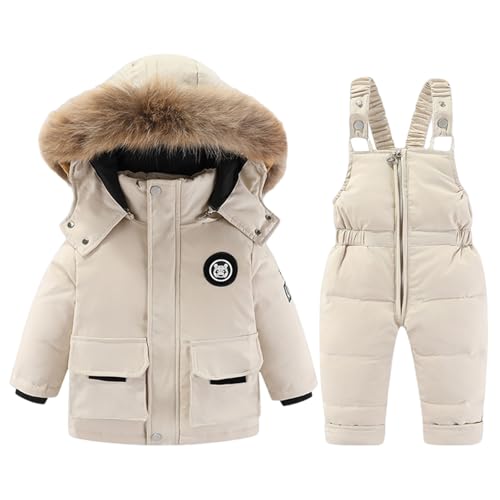 Snowsuit Children's Boys Ski Suit, Skisuit Set Hooded Straps Snowsuit Winter 2-Piece Outfit Set Girls Toddler Cute Outfits Clothing Kids Snow Suit Winter Warm Skiwear Outfits