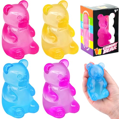 4Pcs Doh Fidget Toys, Stress Balls for Adults Kids, Squishy Stress Relief Toys, Sensory Squeeze Balls Finger Exercise Fidget Cube Bear Toy, Birthday Easter Gifts for Kids, Stocking Fillers