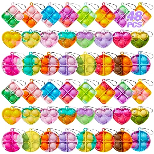 TOANWOD 48 PCS Party Bag Fillers for Kids: Easter Stocking Fillers Fidget Toys Pop Keyring - Eve Box Fillers Bulk Kids Party Favours - Birthday Gifts Class Prize for Girls Boys Unisex
