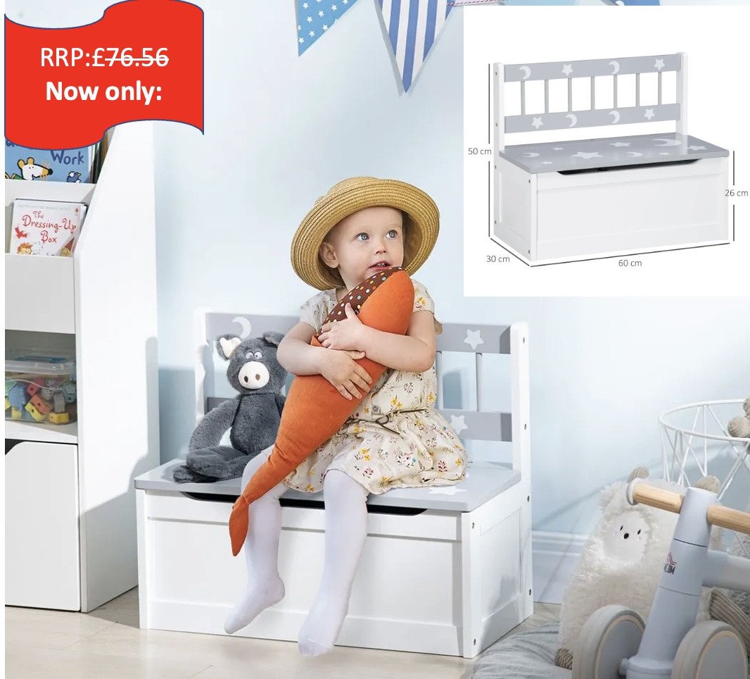 Homcom 2 In 1 Wooden Toy Box, Kids Seat Bench Storage Chest, 60 x 30 50cm