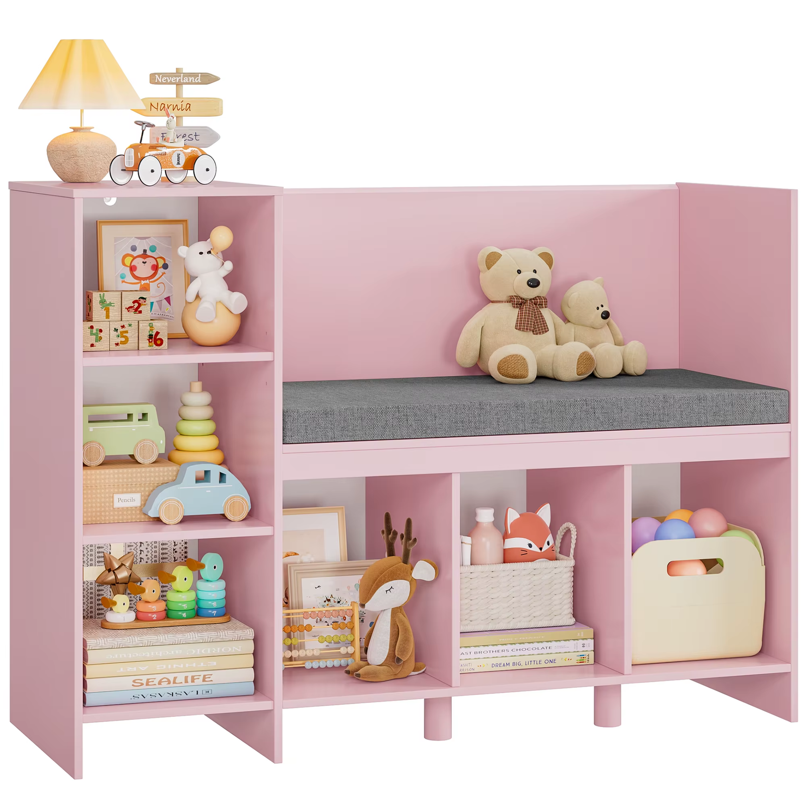 2 in 1 Wooden Kids Storage Bench Toy Box with Safety Rod Kids Furniture Pink New