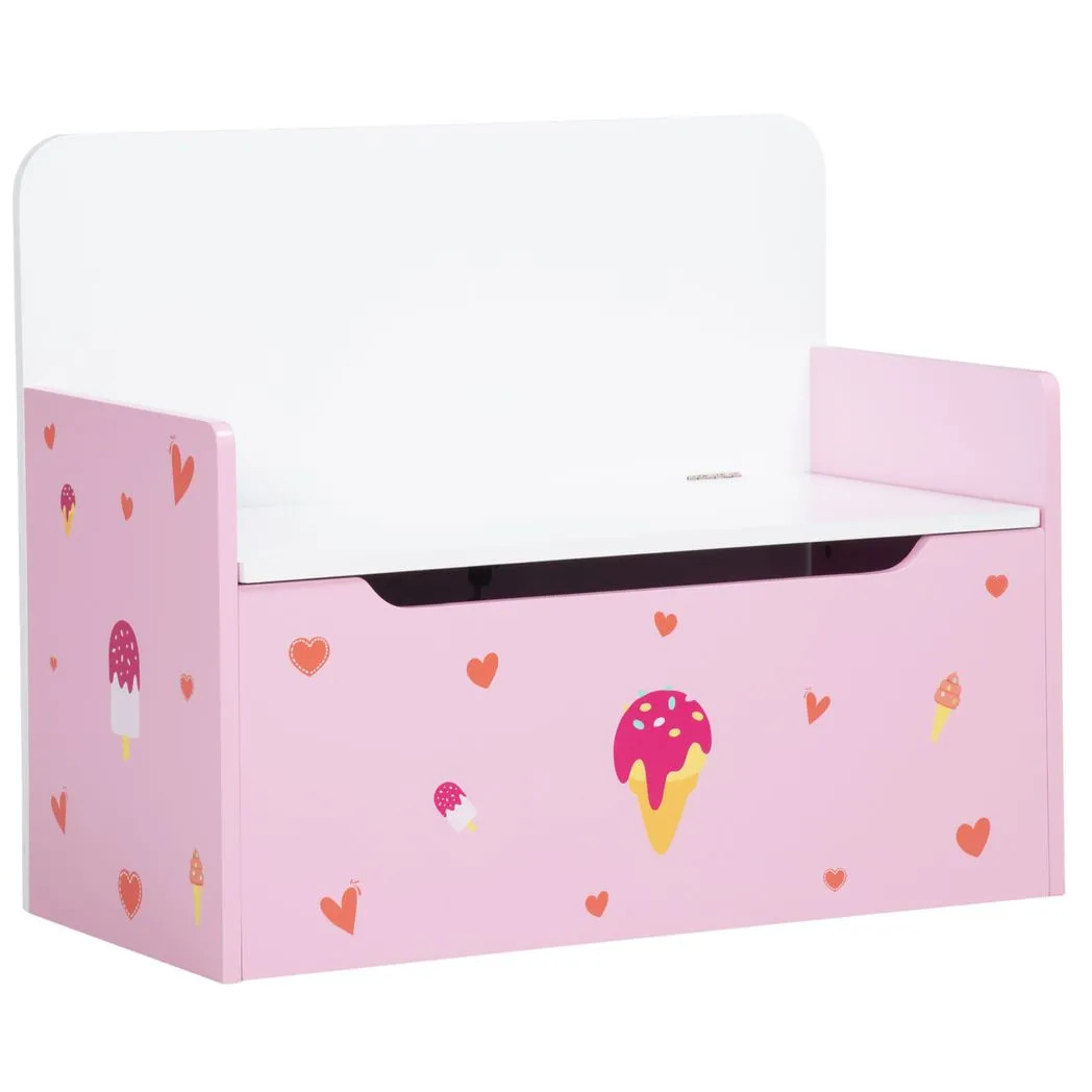 2-in-1 Kids Storage Bench, Toy Box w/ Safety Rod - Pink
