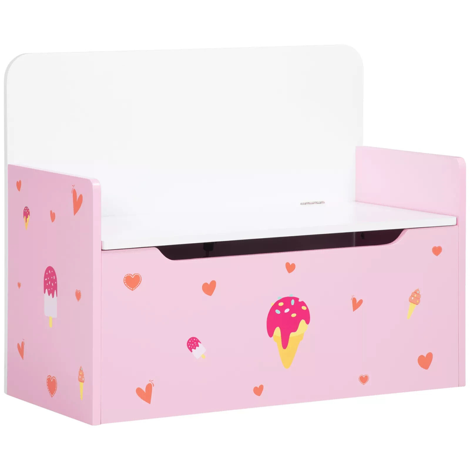 2 in 1 Wooden Kids Storage Bench Toy Box with Safety Rod - Pink