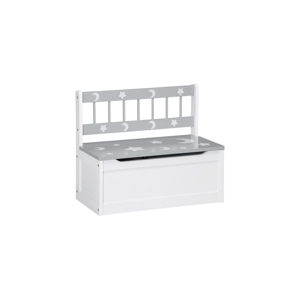 2 In 1 Wooden Toy Box, Kids Storage Bench with Safety Rod - Grey