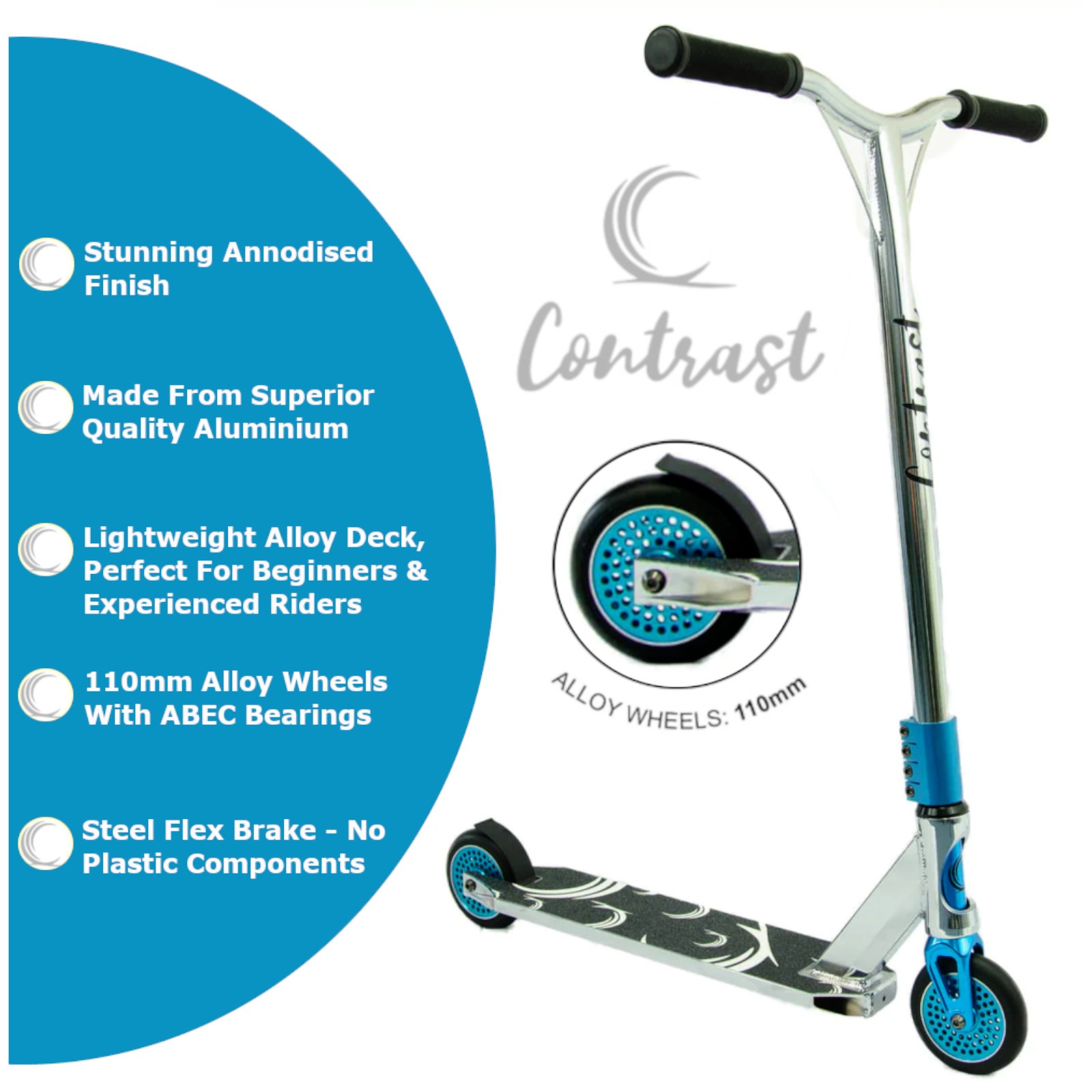 Kids Stunt Scooter Contrast Zone Silver Surfer Blue 110mm Wheels