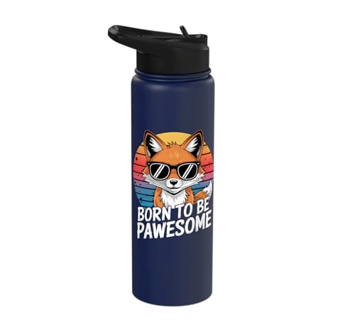 Cute Fox Wearing Sunglasses Kids Women Men Stainless Steel Insulated Water Bottle