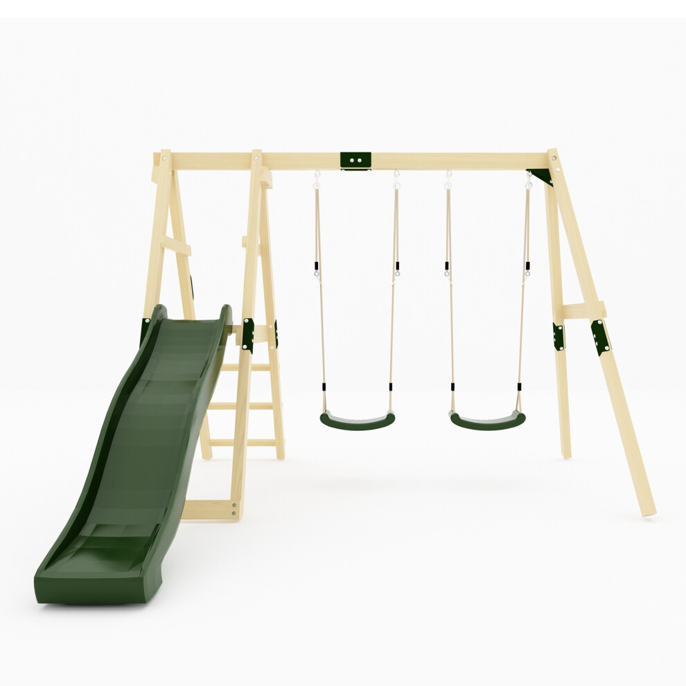 Rebo Apollo Wooden Garden Swing Set with Platform and Slide for Kids - Green