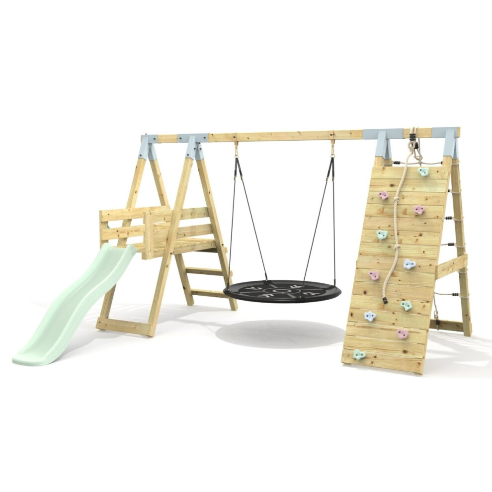 Rebo Adventure Wooden Garden Climbing Frame, Swing Set and Slide for Kids - Rosa Green