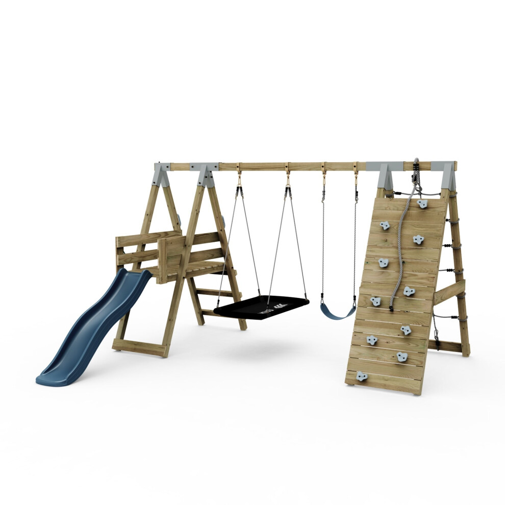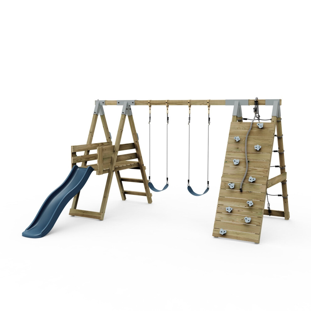 Rebo® Wooden Climbing Frame with Vertical Rock Wall, Swing Set and Slide - Dolomite | OutdoorToys | Kids' Outdoor Wooden Garden Play Equipment, Children's Jungle Gym